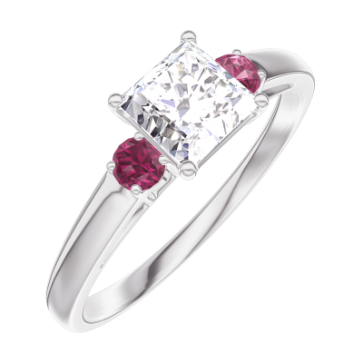 « L'ATELIER » Nº182544Anello Oro bianco 9 carati - Diamante di laboratorio Principessa 0.5 Carati - Pietre laterali Rubino