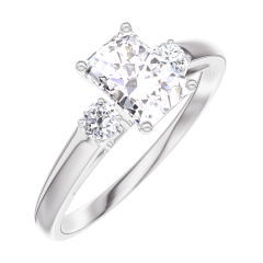 Anello Oro bianco 9 carati - Diamante di laboratorio Rettangolo 0.5 Carati - Pietre laterali Diamante di laboratorio