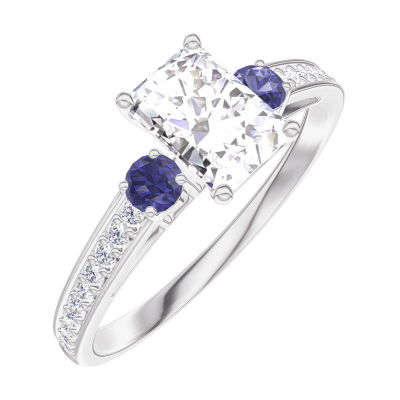 « L'ATELIER » Nº182668Anello Oro bianco 9 carati - Diamante di laboratorio Rettangolo 0.5 Carati - Pietre laterali Zaffiro blu - Incastonatura Diamante di laboratorio