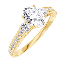 Anello Oro giallo 9 carati - Diamante di laboratorio Ovale 0.5 Carati - Pietre laterali Diamante di laboratorio - Incastonatura Diamante di laboratorio
