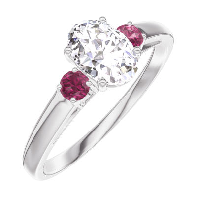 « L'ATELIER » Nº182743Anello Oro bianco 18 carati - Diamante di laboratorio Ovale 0.5 Carati - Pietre laterali Rubino