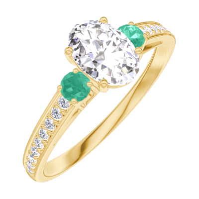 « L'ATELIER » N. 182786Anello Oro giallo 9 carati - Diamante di laboratorio Ovale 0.5 Carati - Pietre laterali Smeraldo - Incastonatura Diamante di laboratorio