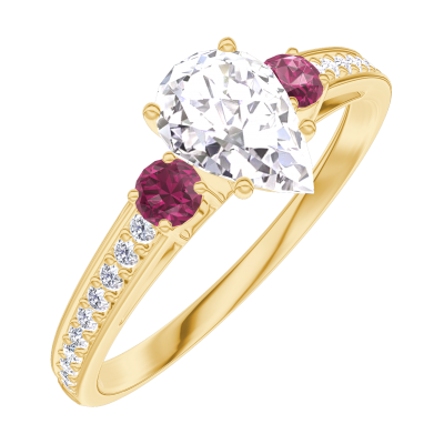 « L'ATELIER » Nº182846Anello Oro giallo 9 carati - Diamante di laboratorio Goccia 0.5 Carati - Pietre laterali Rubino - Incastonatura Diamante di laboratorio