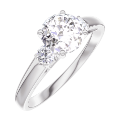 Anello Oro bianco 9 carati - Diamante di laboratorio Rotonda 0.7 Carati - Pietre laterali Diamante di laboratorio