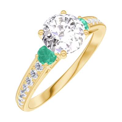 « L'ATELIER » Nº184885Anello Oro giallo 18 carati - Diamante di laboratorio Rotonda 0.7 Carati - Pietre laterali Smeraldo - Incastonatura Diamante di laboratorio 5