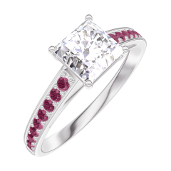 Anello Oro bianco 9 carati - Diamante di laboratorio Principessa 0.7 Carati - Incastonatura Rubino