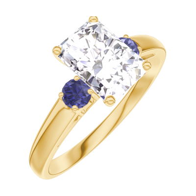 « L'ATELIER » N. 185062Anello Oro giallo 9 carati - Diamante di laboratorio Rettangolo 0.7 Carati - Pietre laterali Zaffiro blu