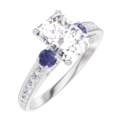 « L'ATELIER » N. 185067Anello Oro bianco 18 carati - Diamante di laboratorio Rettangolo 0.7 Carati - Pietre laterali Zaffiro blu - Incastonatura Diamante di laboratorio