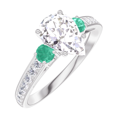 « L'ATELIER » Nº185288Anello Oro bianco 9 carati - Diamante di laboratorio Goccia 0.7 Carati - Pietre laterali Smeraldo - Incastonatura Diamante di laboratorio