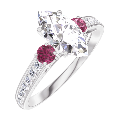 « L'ATELIER » N. 185347Anello Oro bianco 18 carati - Diamante di laboratorio Marchesa 0.7 Carati - Pietre laterali Rubino - Incastonatura Diamante di laboratorio