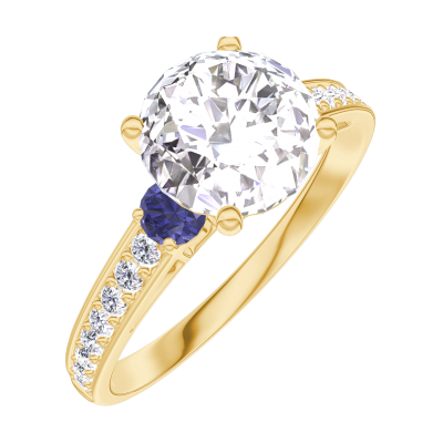 « L'ATELIER » Nº187266Anello Oro giallo 9 carati - Diamante di laboratorio Rotonda 1 Carati - Pietre laterali Zaffiro blu - Incastonatura Diamante di laboratorio 4.9