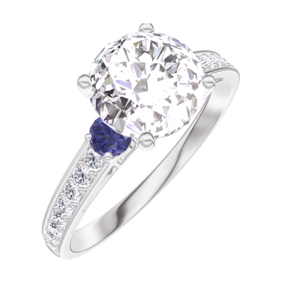 « L'ATELIER » N. 187267Anello Oro bianco 18 carati - Diamante di laboratorio Rotonda 1 Carati - Pietre laterali Zaffiro blu - Incastonatura Diamante di laboratorio 4.9