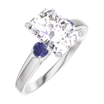 « L'ATELIER » Nº187463Anello Oro bianco 18 carati - Diamante di laboratorio Rettangolo 1 Carati - Pietre laterali Zaffiro blu 4.6
