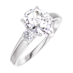 Anello Oro bianco 18 carati - Diamante di laboratorio Goccia 1 Carati - Pietre laterali Diamante di laboratorio