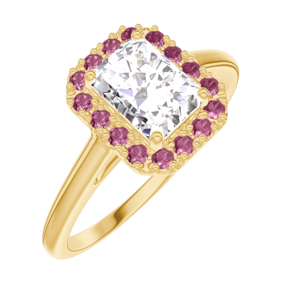 « L'ATELIER » N. 190114Anello Oro giallo 9 carati - Diamante di laboratorio Rettangolo 0.5 Carati - Halo Rubino 4.9
