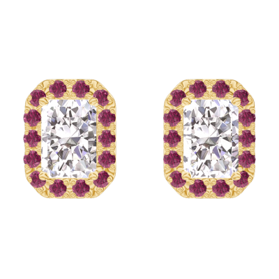 « L'ATELIER » N. 201001Orecchini Oro giallo 18 carati - Diamante Rettangolo 0.3 Carati (2 X) - Halo Rubino