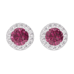 Orecchini Oro bianco 18 carati - Rubino Rotonda 0.3 Carati (2 X) - Halo Diamante