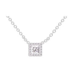Collana Oro bianco 9 carati - Diamante Principessa 0.3 Carati - Halo Diamante - Catena Rolò