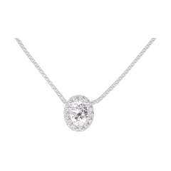 Collana Oro bianco 9 carati - Diamante Ovale 0.3 Carati - Halo Diamante - Catena Veneziana