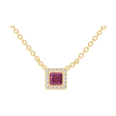 Collana Oro giallo 9 carati - Rubino Principessa 0.3 Carati - Halo Diamante - Catena Rolò