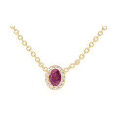 Collana Oro giallo 18 carati - Rubino Ovale 0.3 Carati - Halo Diamante - Catena Rolò