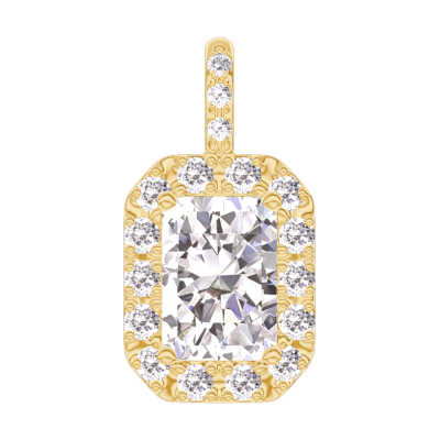 « L'ATELIER » N. 203990Ciondolo Oro giallo 9 carati - Diamante di laboratorio Rettangolo 0.3 Carati - Halo Diamante di laboratorio - Incastonatura Diamante di laboratorio - Nessuna catenella