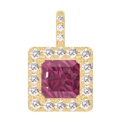 Ciondolo Oro giallo 9 carati - Rubino Principessa 0.3 Carati - Halo Diamante - Incastonatura Diamante - Nessuna catenella