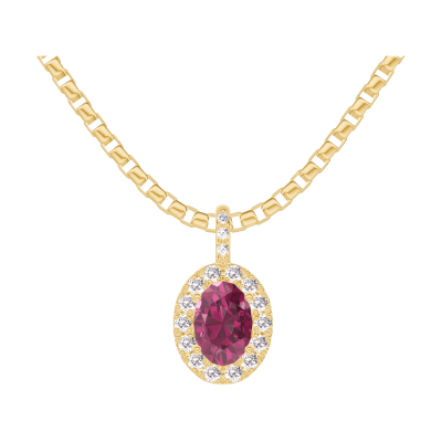 « L'ATELIER » Nº205365Ciondolo Oro giallo 18 carati - Rubino Ovale 0.3 Carati - Halo Diamante - Incastonatura Diamante - Catena Veneziana