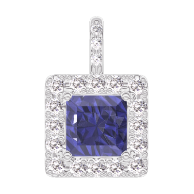 « L'ATELIER » Nº206104Ciondolo Oro bianco 9 carati - Zaffiro blu Principessa 0.3 Carati - Halo Diamante - Incastonatura Diamante - Nessuna catenella