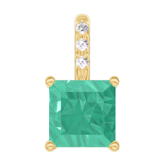 Ciondolo Oro giallo 18 carati - Smeraldo Principessa 0.3 Carati - Incastonatura Diamante - Nessuna catenella