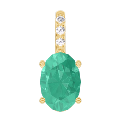 Ciondolo Oro giallo 9 carati - Smeraldo Ovale 0.3 Carati - Incastonatura Diamante - Nessuna catenella