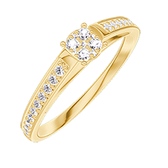 Anello Oro giallo 18 carati - Cluster di diamanti naturali Rotonda equivalente 0.3 - Incastonatura Diamante