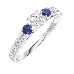 Anello Oro bianco 18 carati - Cluster di diamanti naturali Rotonda equivalente 0.3 - Pietre laterali Zaffiro blu - Incastonatura Diamante