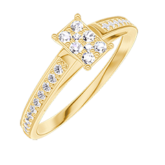 Anello Oro giallo 9 carati - Cluster di diamanti naturali Rettangolo equivalente 0.3 - Incastonatura Diamante
