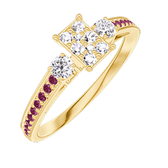 « L'ATELIER » N. 209230Anello Oro giallo 9 carati - Cluster di diamanti naturali Rettangolo equivalente 0.3 - Pietre laterali Diamante - Incastonatura Rubino