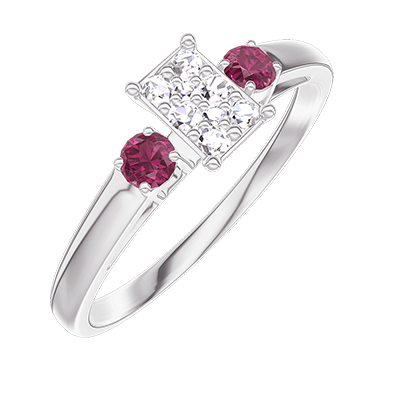 « L'ATELIER » Nº209243Anello Oro bianco 18 carati - Cluster di diamanti naturali Rettangolo equivalente 0.3 - Pietre laterali Rubino