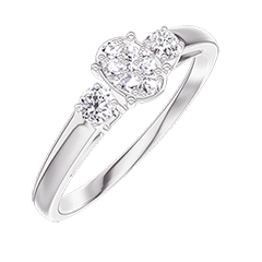 Anello Oro bianco 9 carati - Cluster di diamanti naturali Ovale equivalente 0.3 - Pietre laterali Diamante