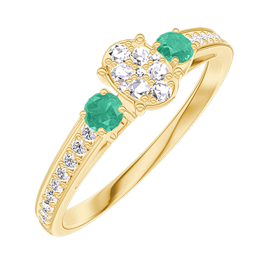 « L'ATELIER » N. 209386Anello Oro giallo 9 carati - Cluster di diamanti naturali Ovale equivalente 0.3 - Pietre laterali Smeraldo - Incastonatura Diamante 5