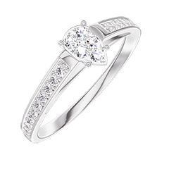 Anello Oro bianco 9 carati - Cluster di diamanti naturali Goccia equivalente 0.3 - Incastonatura Diamante