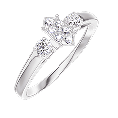Anello Oro bianco 9 carati - Cluster di diamanti naturali Marchesa equivalente 0.3 - Pietre laterali Diamante
