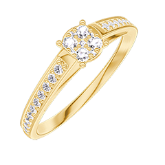 Anello Oro giallo 18 carati - Cluster di diamanti naturali Rotonda equivalente 0.5 - Incastonatura Diamante