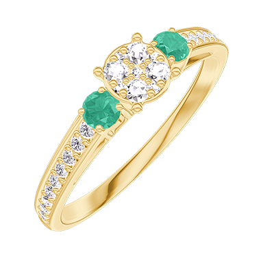 « L'ATELIER » N. 209685Anello Oro giallo 18 carati - Cluster di diamanti naturali Rotonda equivalente 0.5 - Pietre laterali Smeraldo - Incastonatura Diamante 4.9 (16)