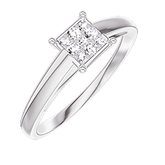 « L'ATELIER » N. 209704Anello Oro bianco 9 carati - Cluster di diamanti naturali Principessa equivalente 0.5
