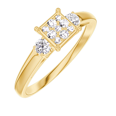 « L'ATELIER » N. 209721Anello Oro giallo 18 carati - Cluster di diamanti naturali Principessa equivalente 0.5 - Pietre laterali Diamante