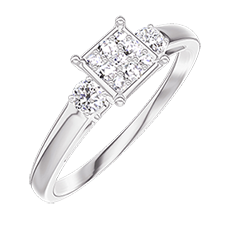 « L'ATELIER » N. 209724Anello Oro bianco 9 carati - Cluster di diamanti naturali Principessa equivalente 0.5 - Pietre laterali Diamante