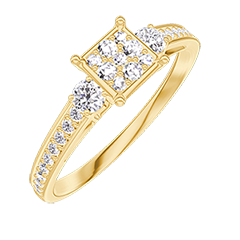 « L'ATELIER » N. 209726Anello Oro giallo 9 carati - Cluster di diamanti naturali Principessa equivalente 0.5 - Pietre laterali Diamante - Incastonatura Diamante