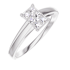 Anello Oro bianco 18 carati - Cluster di diamanti naturali Rettangolo equivalente 0.5