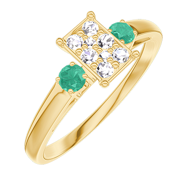 « L'ATELIER » N. 209882Anello Oro giallo 9 carati - Cluster di diamanti naturali Rettangolo equivalente 0.5 - Pietre laterali Smeraldo