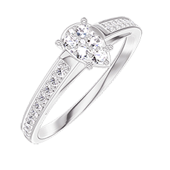 Anello Oro bianco 9 carati - Cluster di diamanti naturali Goccia equivalente 0.5 - Incastonatura Diamante
