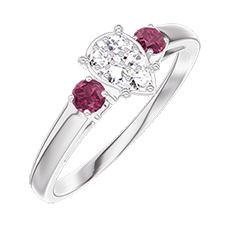 « L'ATELIER » N. 210043Anello Oro bianco 18 carati - Cluster di diamanti naturali Goccia equivalente 0.5 - Pietre laterali Rubino
